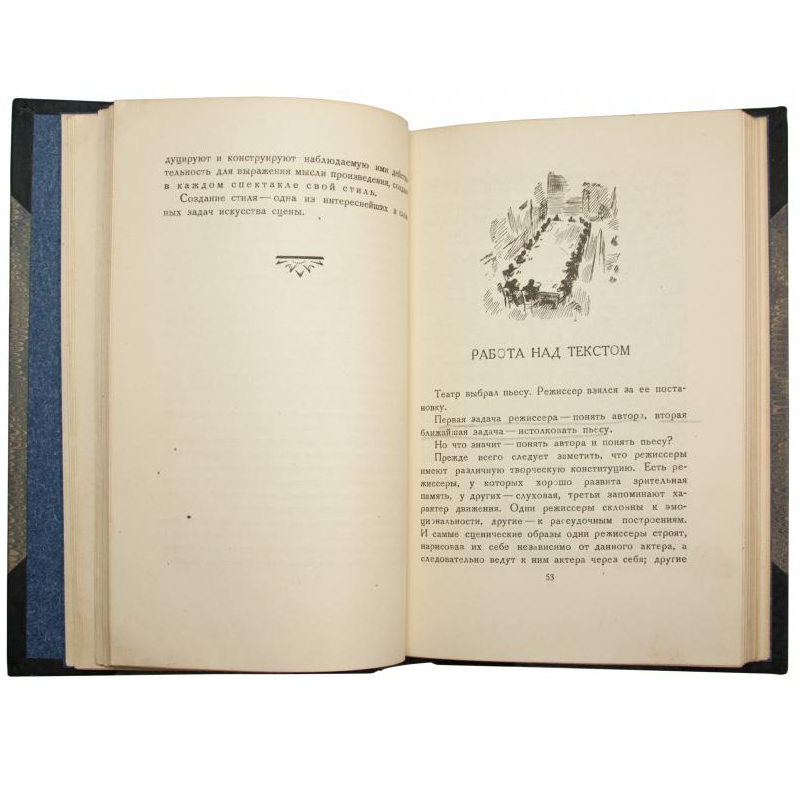 Антикварная книга «Работа режиссера» в современном полукожаном переплете содержит одноименный труд выдающегося русского режиссера, театроведа и педагога Василия Григорьевича Сахновского (1886–1945), который представляет собой фундаментальное исследование, направленное на определение объема и содержания режиссерского искусства. В данной работе автор анализирует и описывает ключевые процессы, связанные с этой сферой, интегрируя теоретические положения с практическими примерами, которые могут быть полезны студентам, изучающим режиссуру.