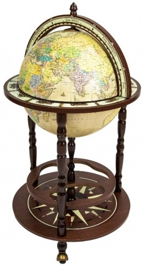 Глобус-бар напольный "Юнона", карта на русском языке, сфера 40 см