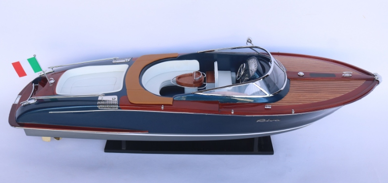 Катер Aquariva представлен в эксклюзивной окраске с использованием темно-синего и серого лака. Такое сочетание цветов придает модели особую глубину и выразительность. Темно-синий цвет ассоциируется с морскими глубинами, а серый лак добавляет изысканности и строгости.