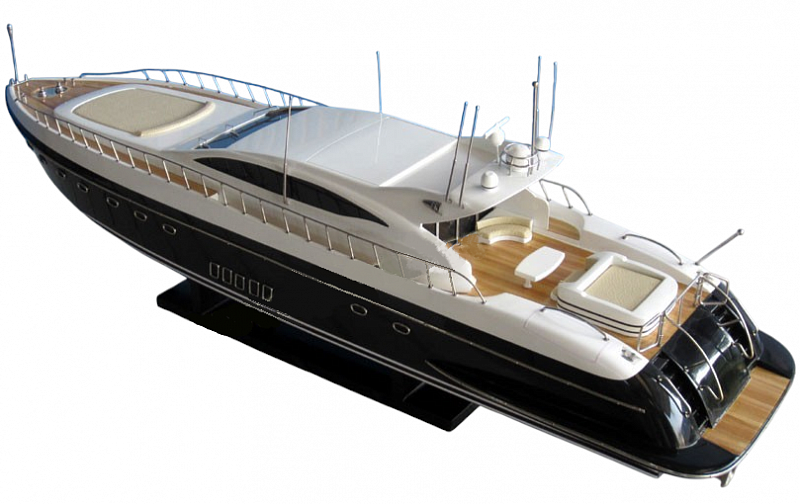 Коллекционная модель яхты Overmarine Mangusta 108 выполнена вручную из дерева с высокой степенью детализации.