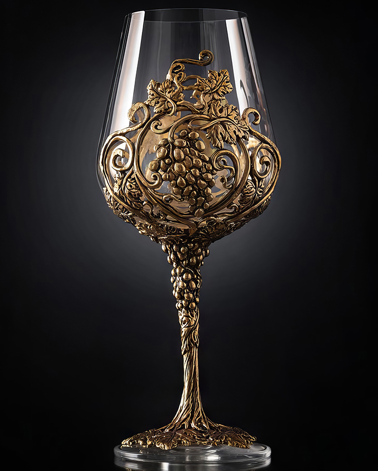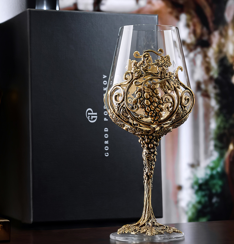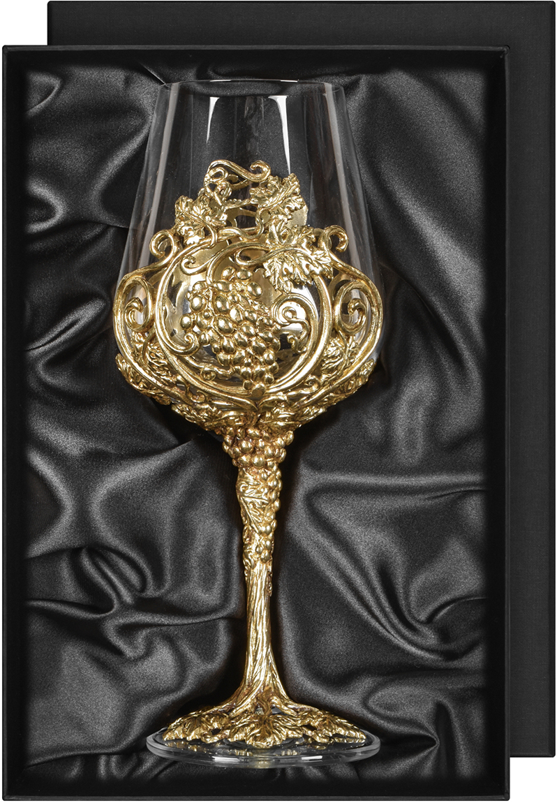 Подарочный бокал для вина с эксклюзивным художественным литьем из латуни в виде виноградной лозы поставляется в элегантной подарочной коробке из дизайнерского картона. Бокал объемом 450 миллилитров станет отличным презентом любителю вина — мужчине или женщине. Это художественное изделие украсит собой коллекцию винных аксессуаров получателя вашего подарка, а купить его вы можете в нашем Бутике подарков PrestigeGIFTS.ru с быстрой доставкой по рабочим дням. Бокалы «Лоза» Royal поставляются как по отдельности, так и в комплектах по 2 и 4 экземпляра.