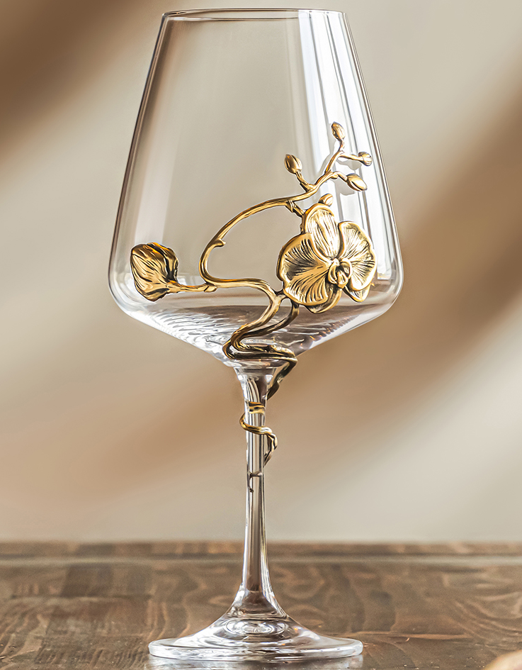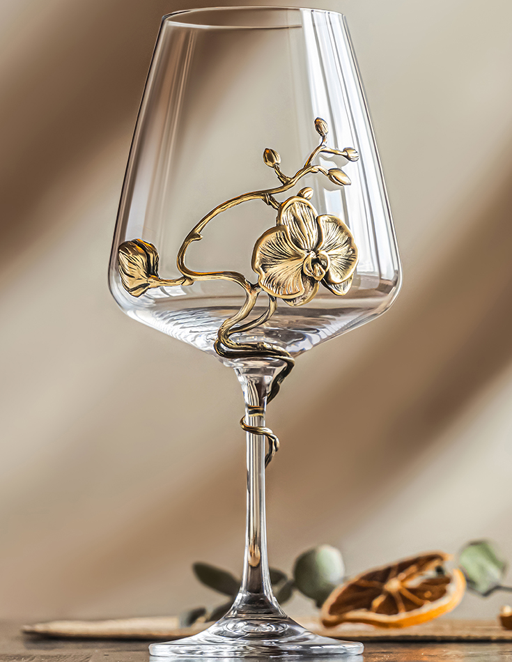Красивый бокал для вина с элегантным художественным литьем из латуни «Орхидея» станет отличным сувениром и украшением дома. Бокал выполнен вручную из богемского стекла (дизайн Corvus) в оправе из патинированного литья с ручной финишной обработкой. Изделие ручной работы поставляется в стильной подарочной коробке. Создайте получателю подарка отличное настроение! Заказать этот бокал с доставкой вы можете в нашем Бутике подарков PrestigeGIFTS.ru — мы привезем его по вашему адресу в точно согласованное с вами время!
