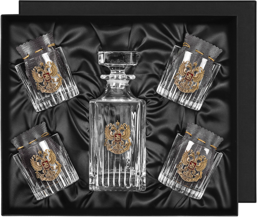 Набор бокалов для виски «Герб России» (эмаль) со штофом и 4 бокалами
