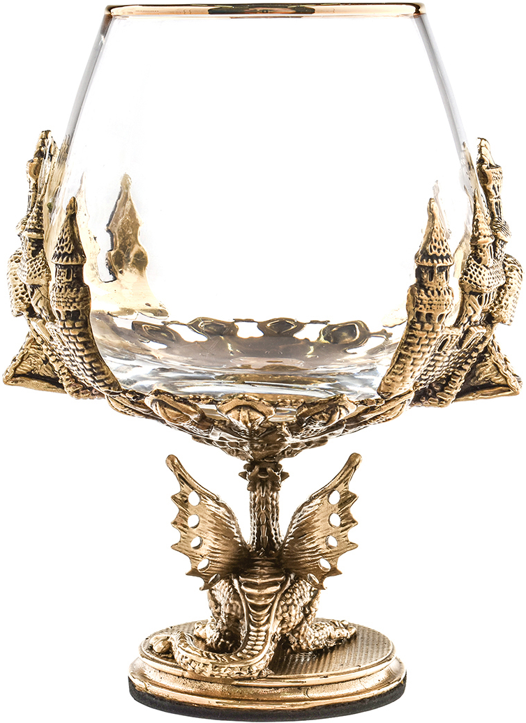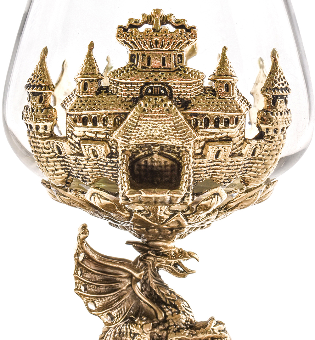Представляем вашему вниманию уникальный подарочный набор бокалов для коньяка и стопок-перевертышей «Дракон» из латунного художественного литья в элегантной деревянной шкатулке.