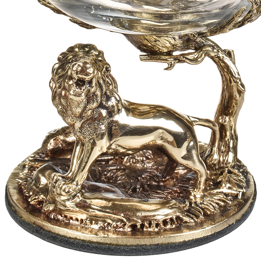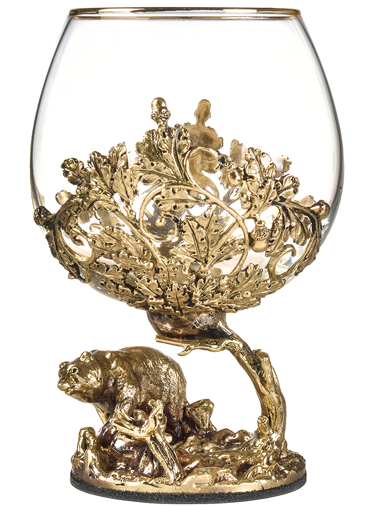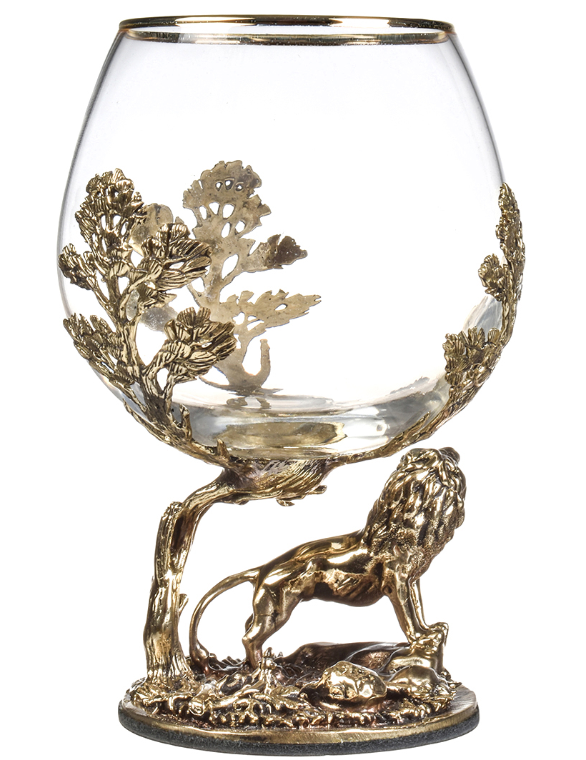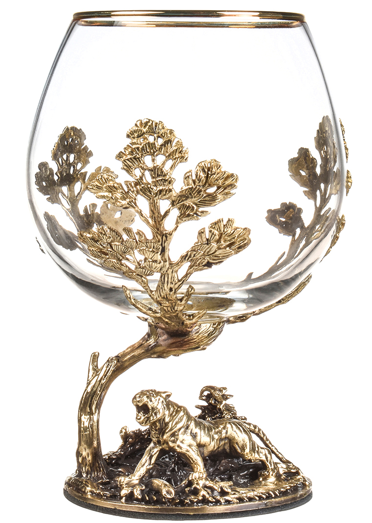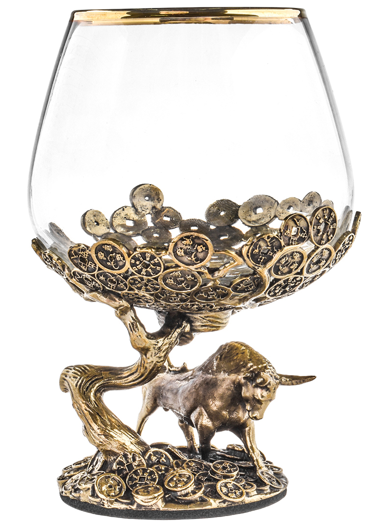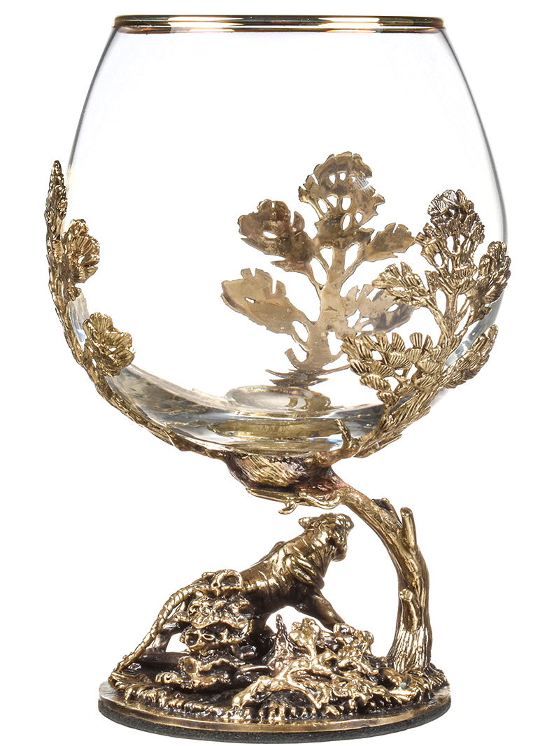 Этот набор коньячных бокалов необычен уже своим содержанием. Вашему вниманию предлагается роскошная шкатулка из дерева, в которой находятся бокалы в оправе из латунного художественного литья со стилизованными изображениями Денежного Быка, Медведя, Тигра и Льва. Все вместе они символизируют огромную силу, удачу, влияние и богатство.