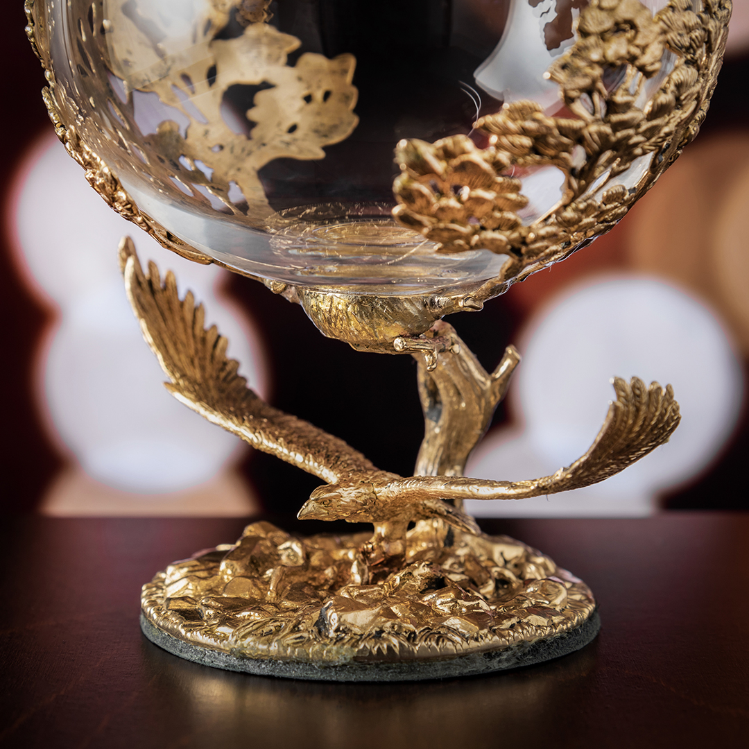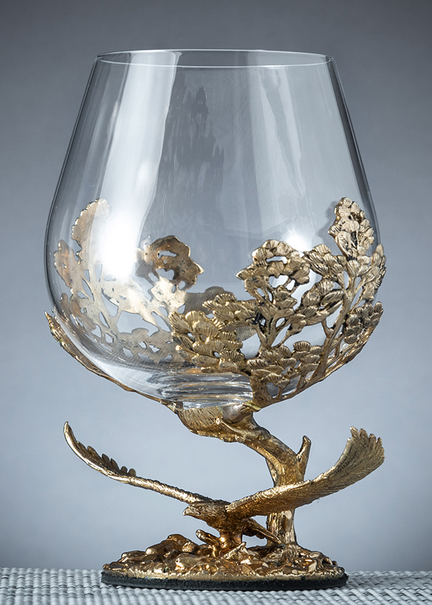 Орел, расправивший крылья, — символ силы и свободы. Бокалы для коньяка с изображением этой благородной хищной птицы, отлитой в металле, станут подарком мудрому и сильному руководителю, который умеет покорять вершины в бизнесе или политике.