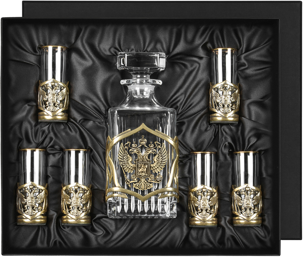 Большой набор «Герб России» для крепких спиртных напитков со штофом и 6 стопками