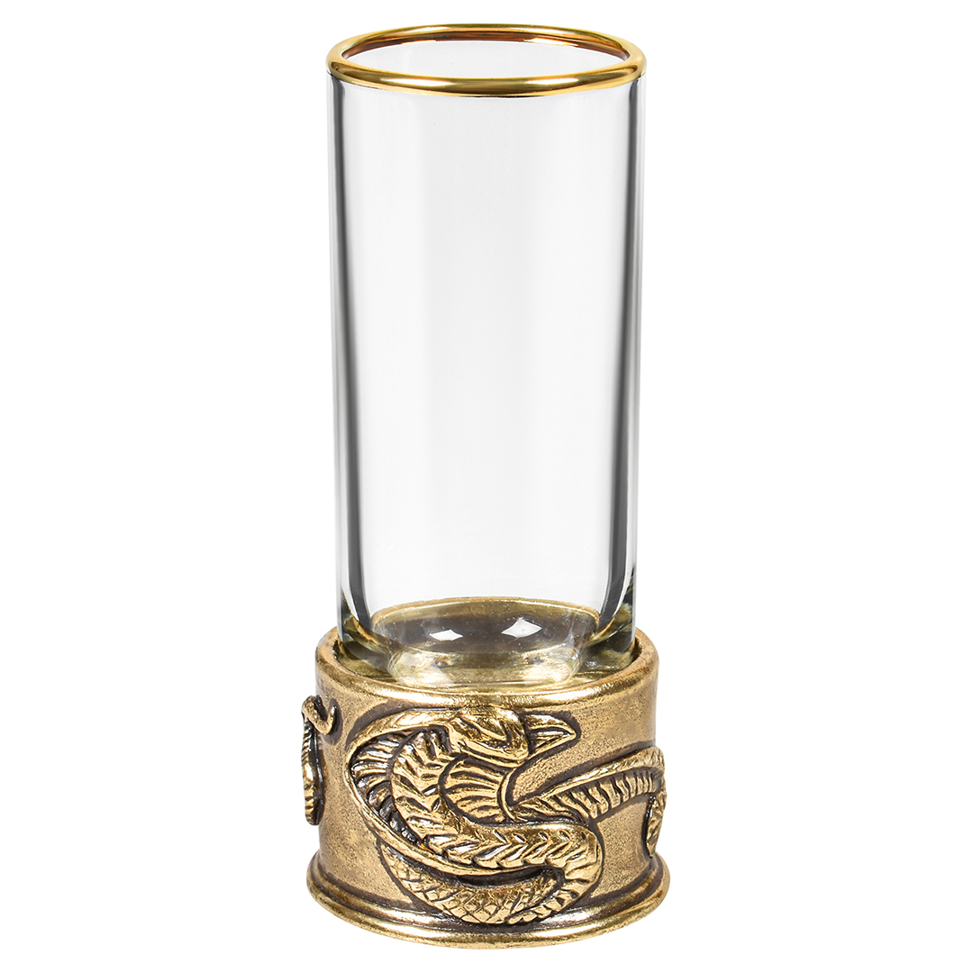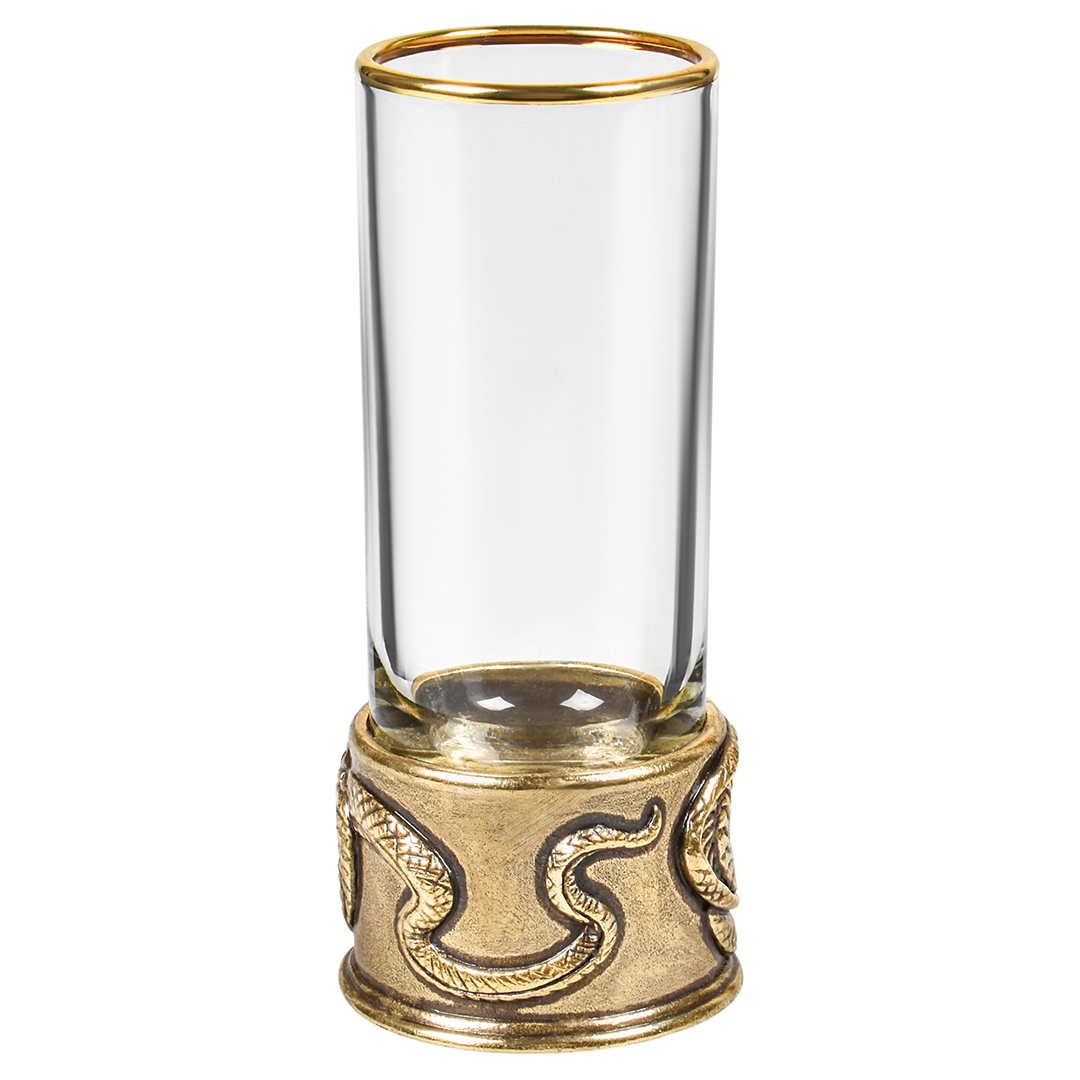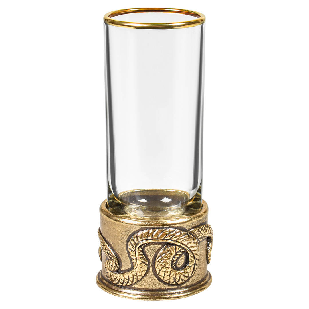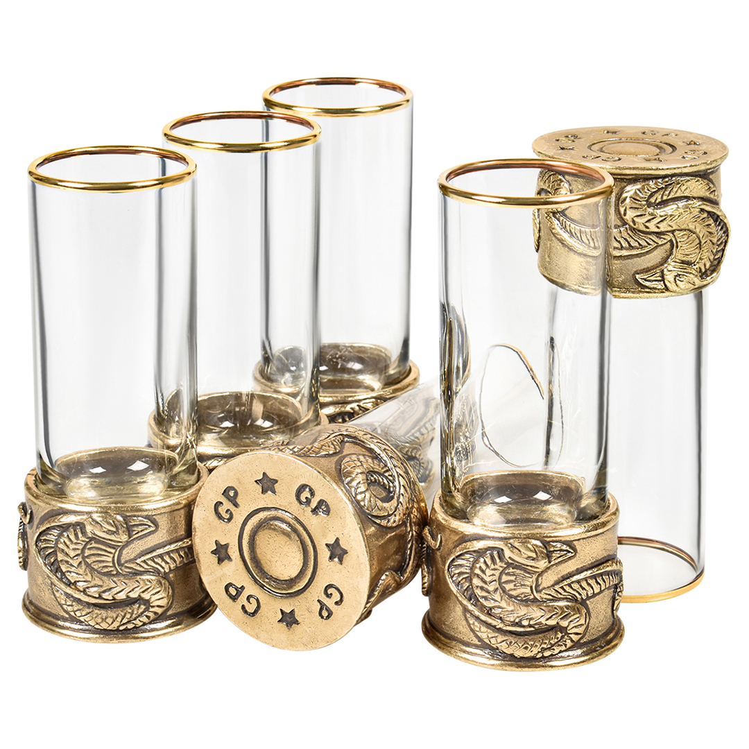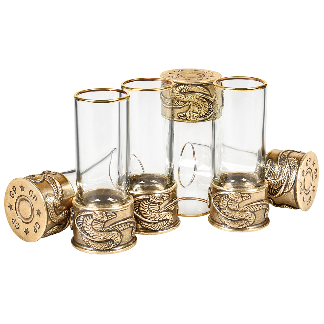 6 стопок для крепких спиртных напитков 60 мл из стекла с латунным художественным литьем