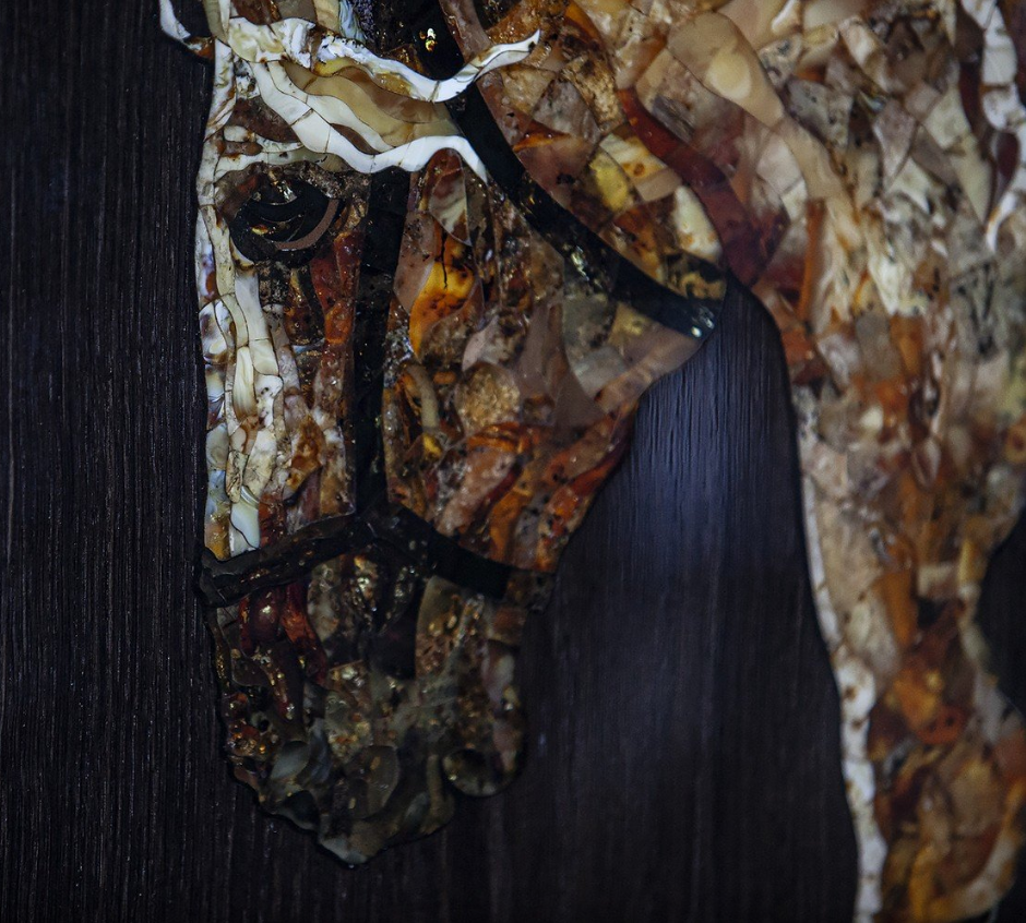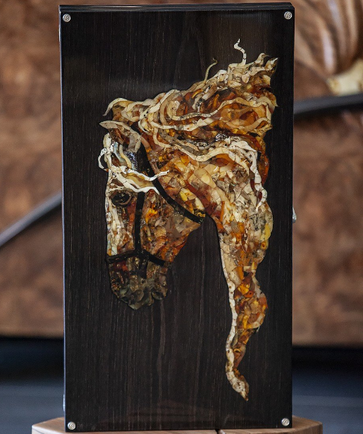 Элитные нарды ручной работы из мореного дуба с изображением лошади в технике инкрустации балтийским янтарем - ценный VIP-подарок!