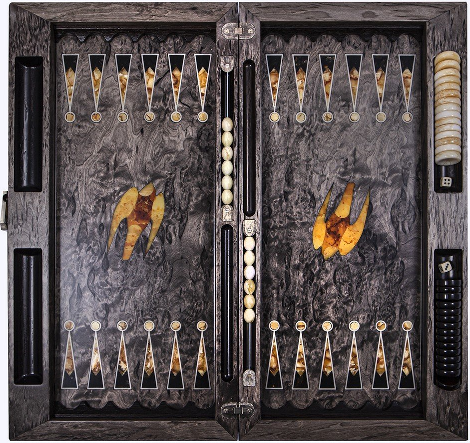 Представляем вашему вниманию коллекционные нарды «Сокол» ручной работы из янтаря и карельской березы