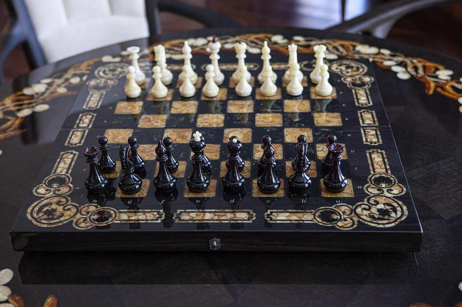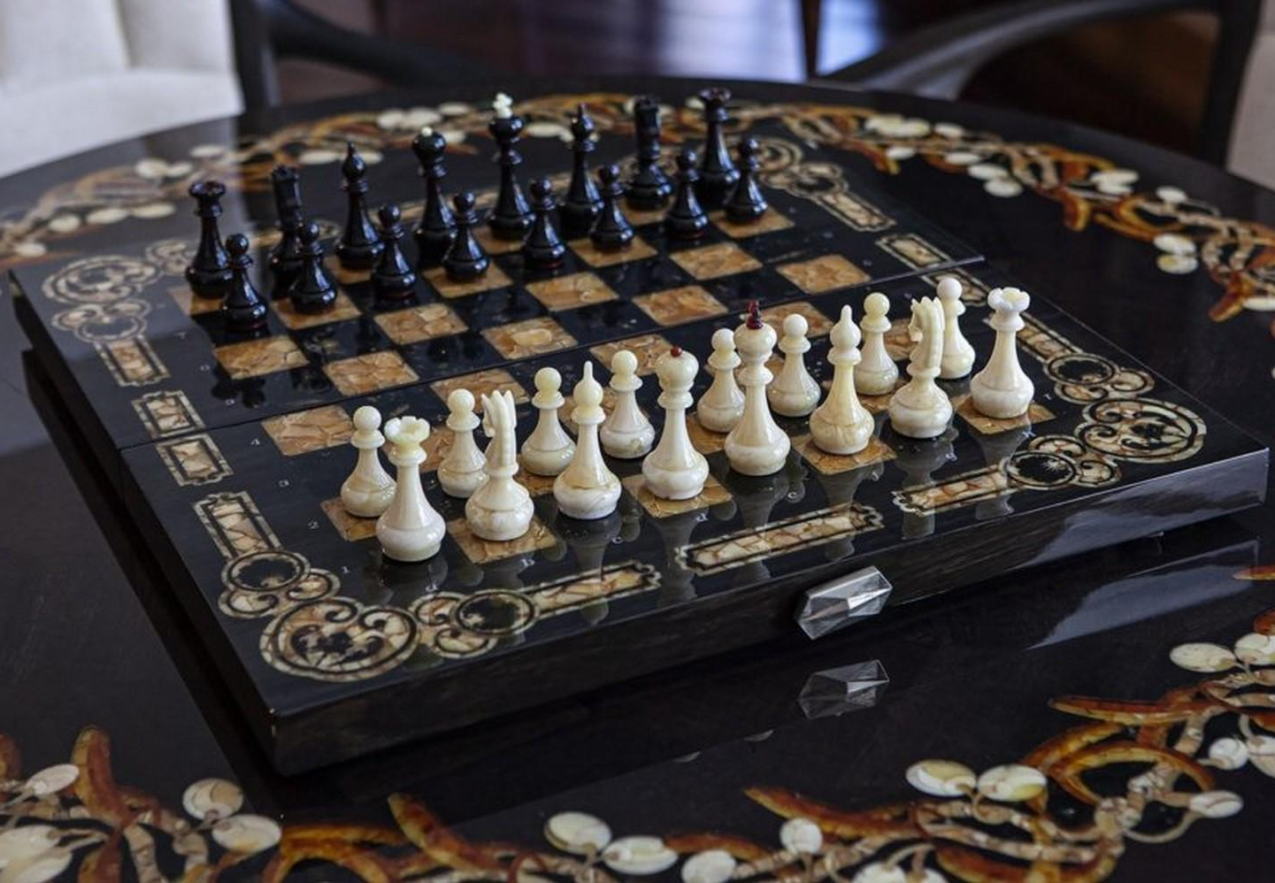 Ручная работа, инкрустация шахматной доски выполнена в технике маркетри