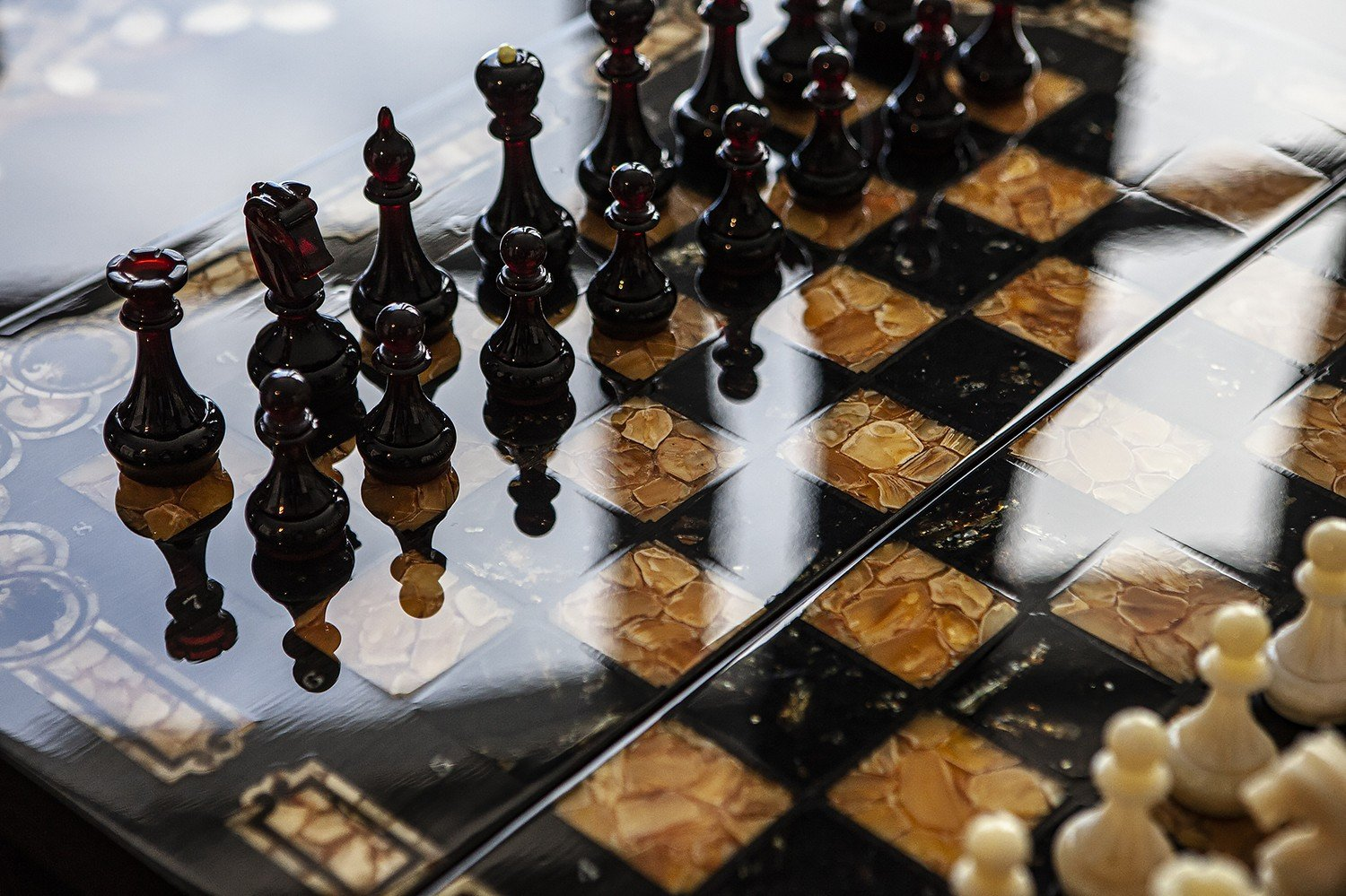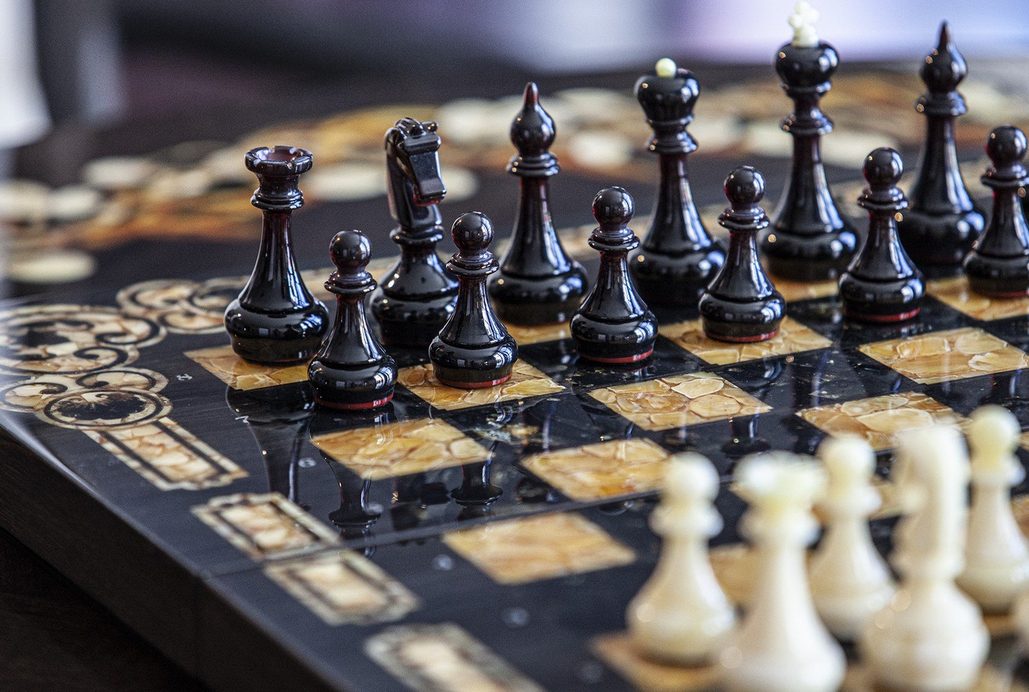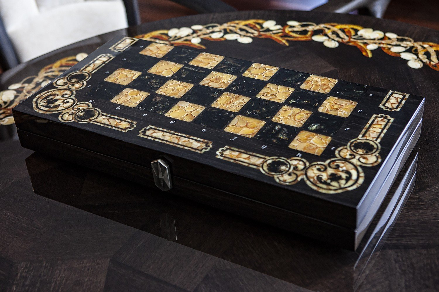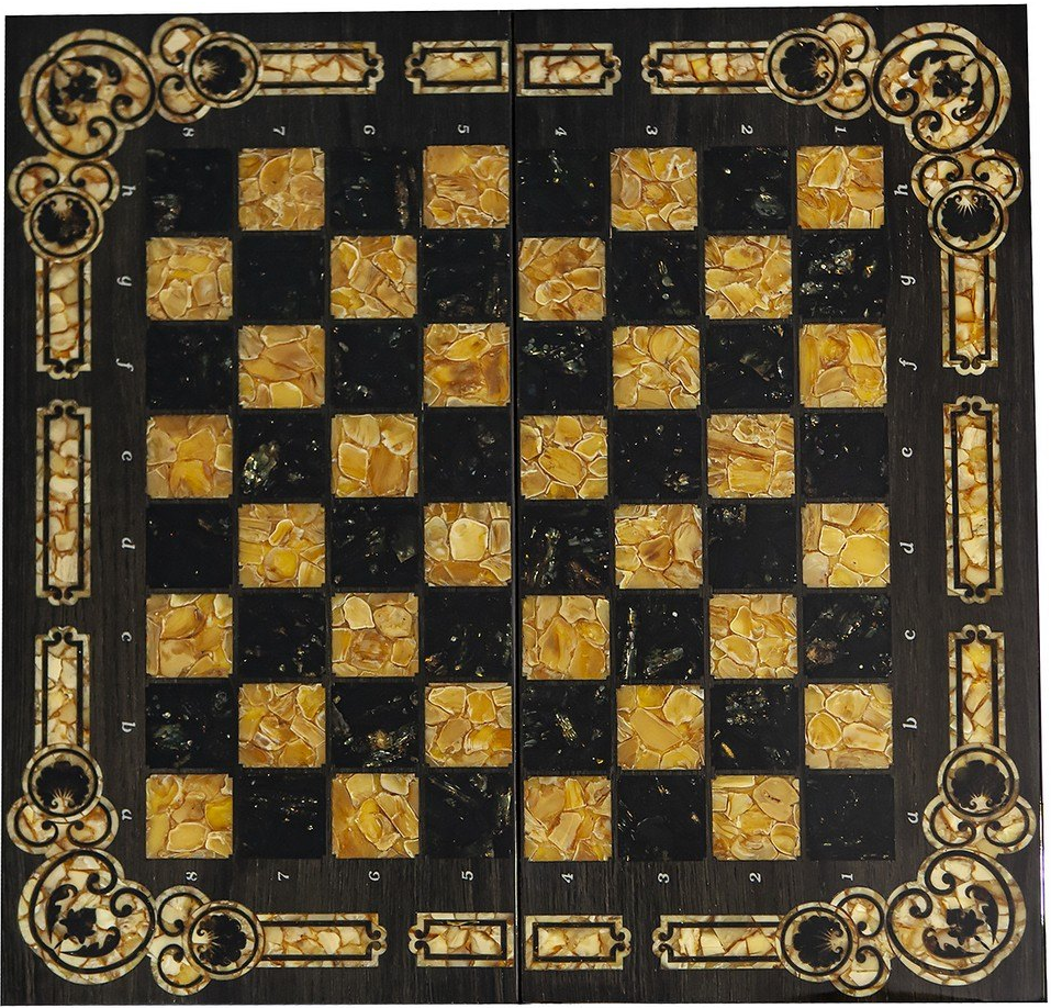 Шахматы «Арабески-Марин» — это образец изысканного шахматного набора, созданного с использованием высококачественных материалов. В основе конструкции этих шахмат лежит мореный дуб. Янтарная инкрустация придает изделию особый статус и эстетическую ценность. Этот шахматный набор можно рассматривать как настоящий артефакт, воплощающий в себе роскошь и утонченность.