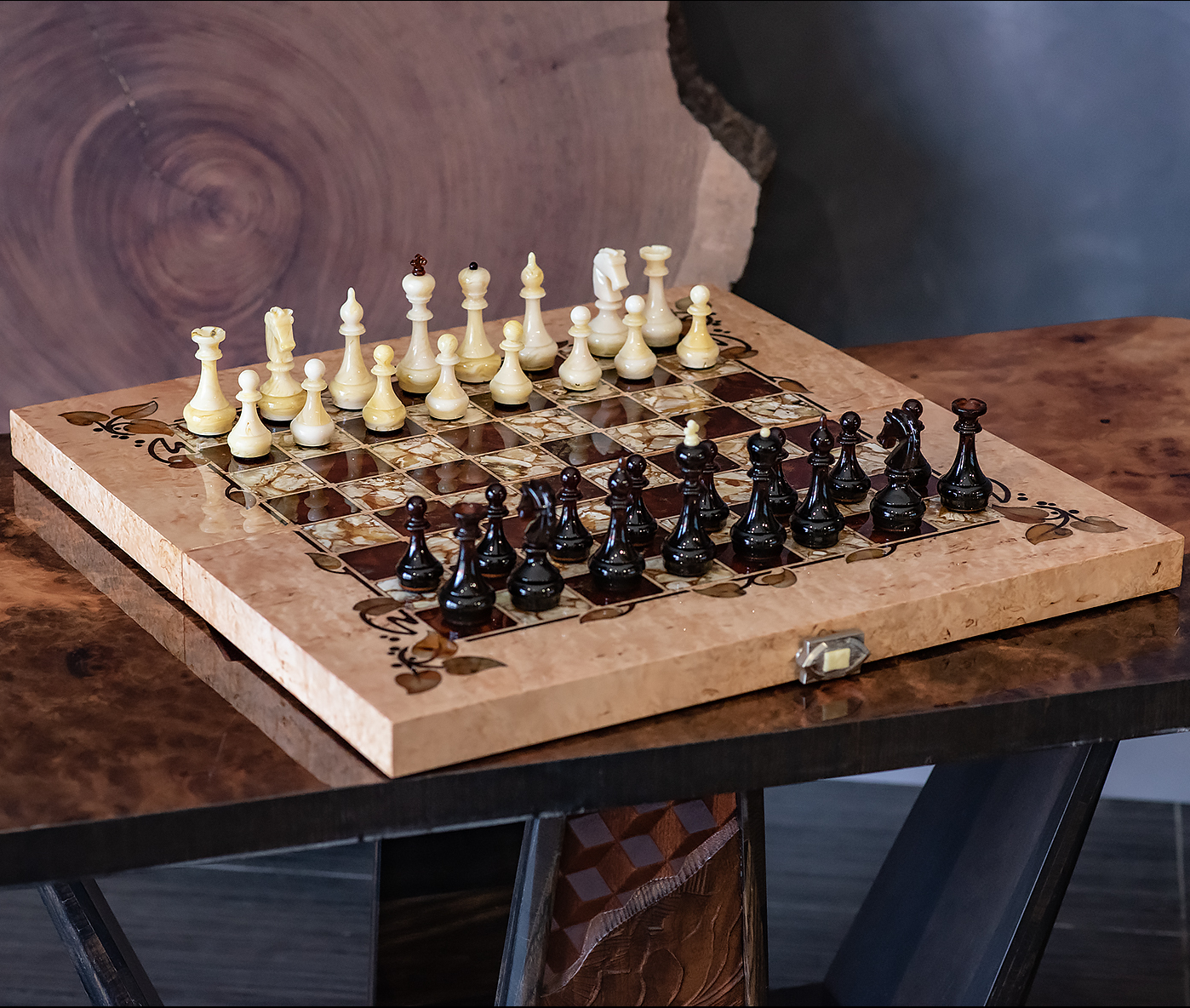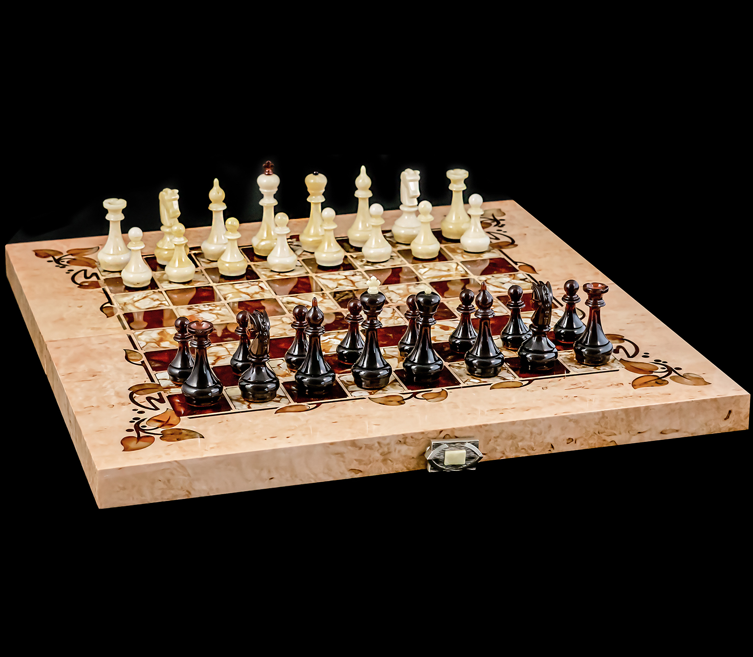Шахматы «Флора» (янтарь, карельская береза)