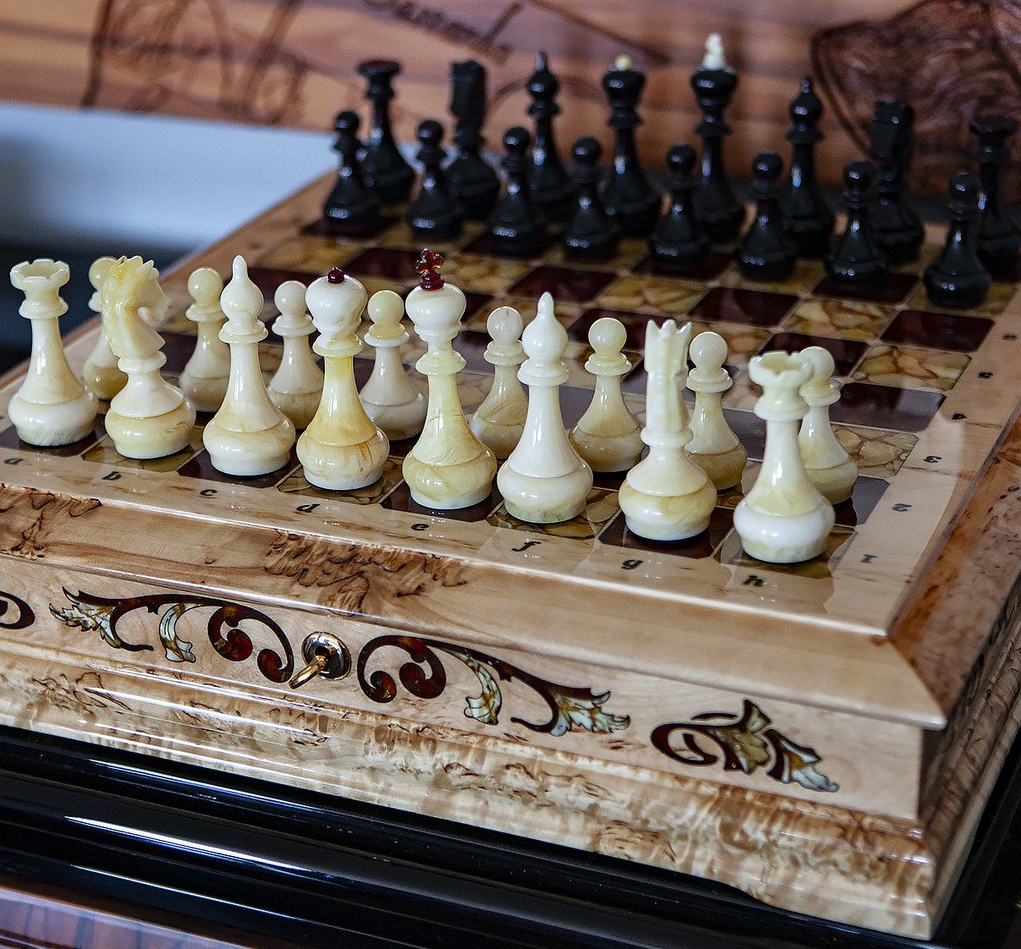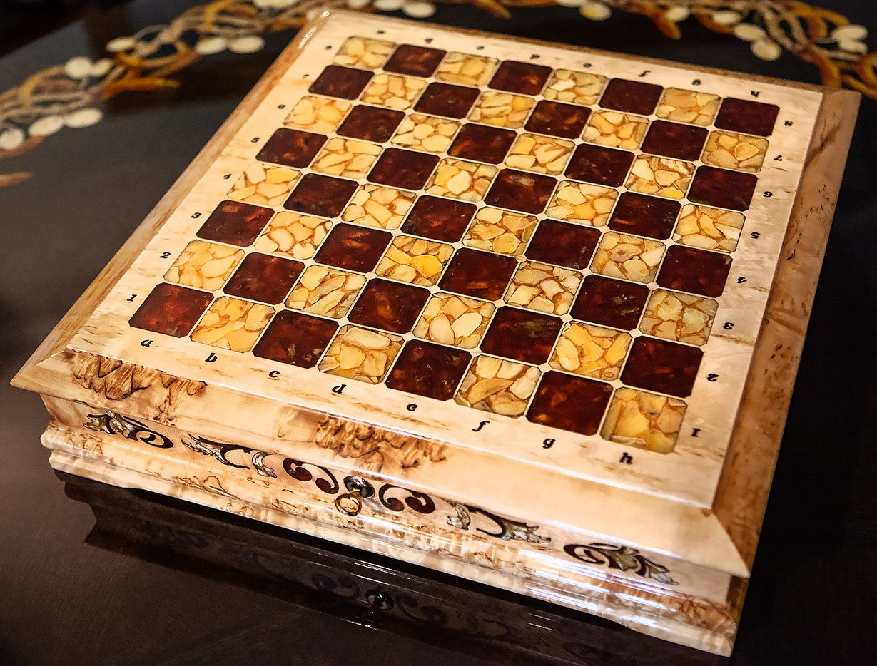 Янтарные шахматы в ларце: элегантность и аристократизм