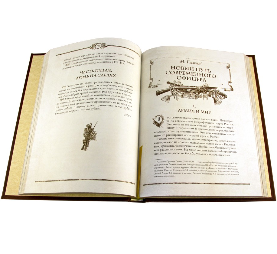 Подарочное издание «Книга русского офицера» в кожаном переплете станет отличным презентом военнослужащему, интересующемуся историей военной службы в дореволюционной России.