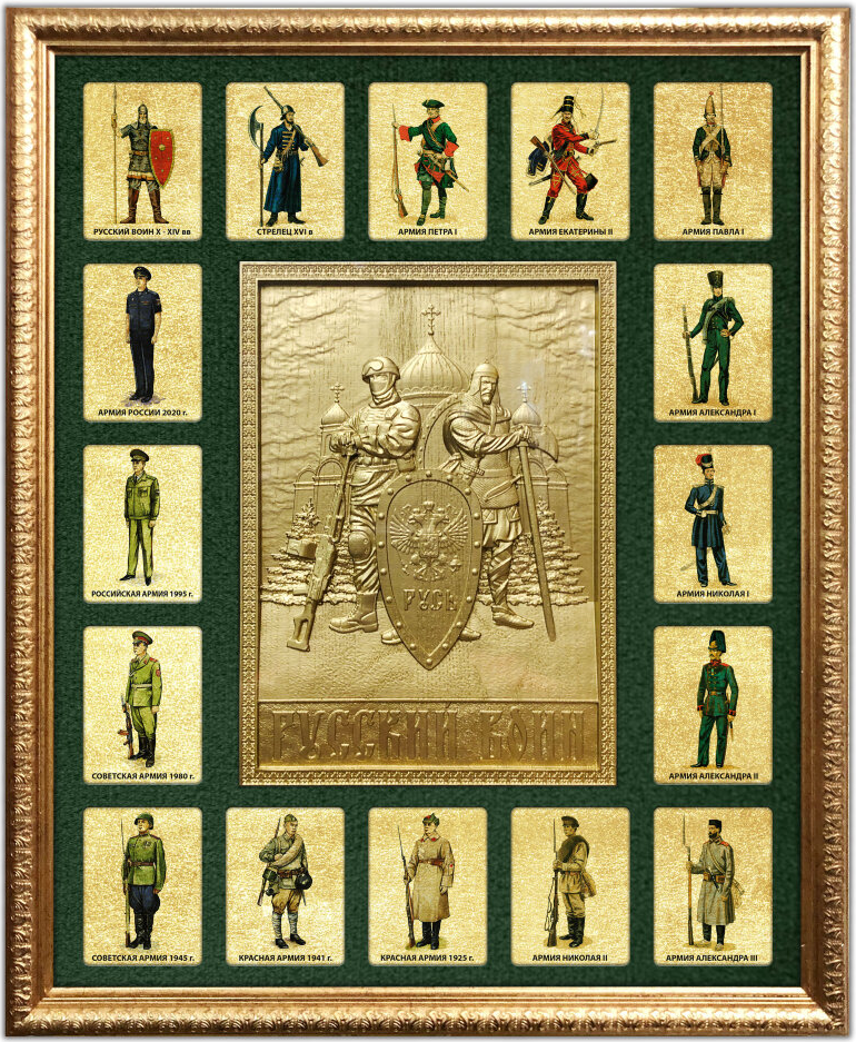 Подарочное панно «Русский воин» в красивом оформлении станет отличным подарком военнослужащему.