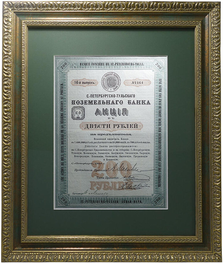 Акция Санкт-Петербургско-Тульского Поземельного банка (1900)