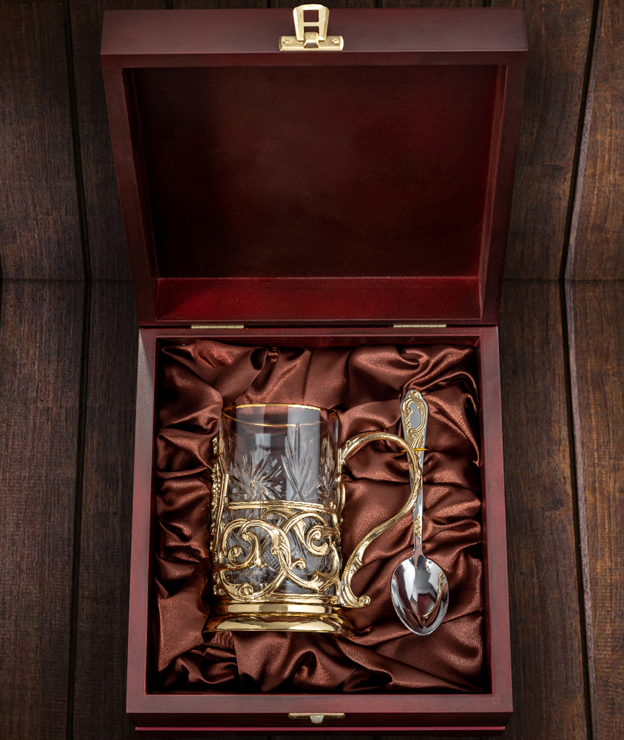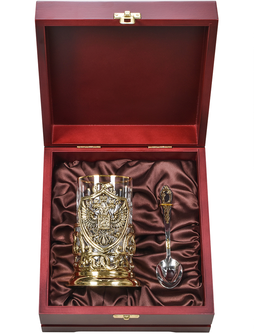 Подстаканник «Герб России» в деревянной шкатулке