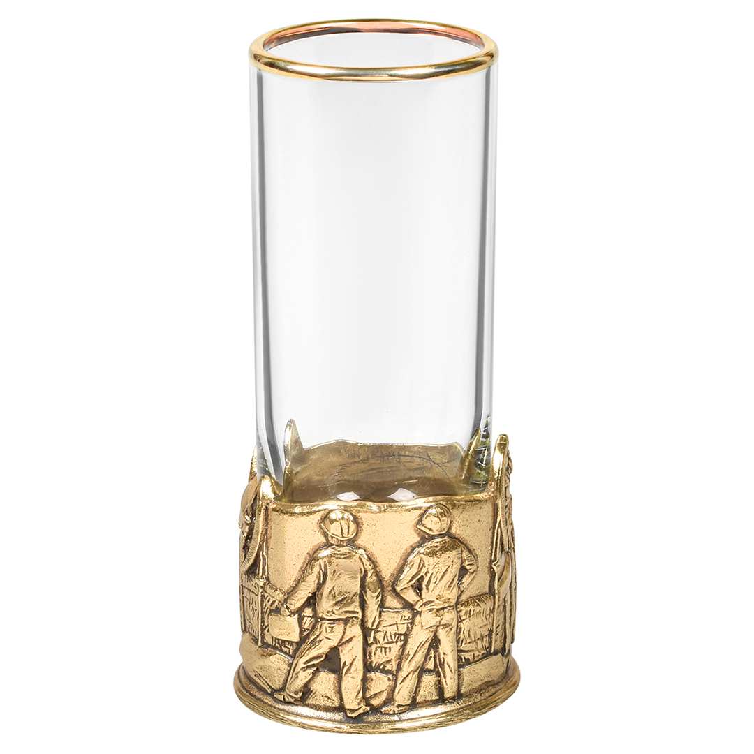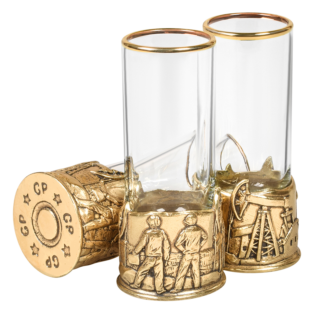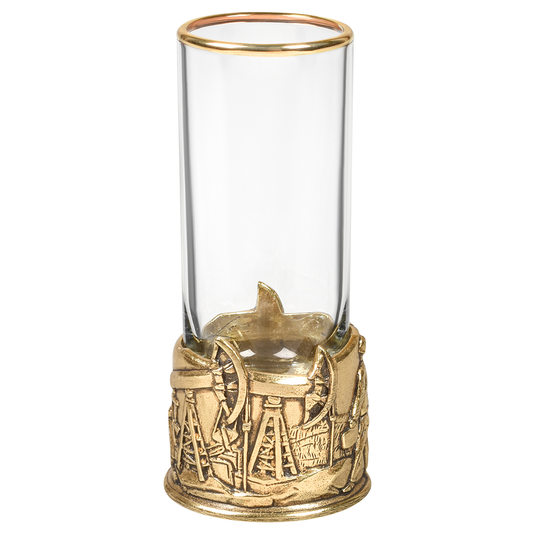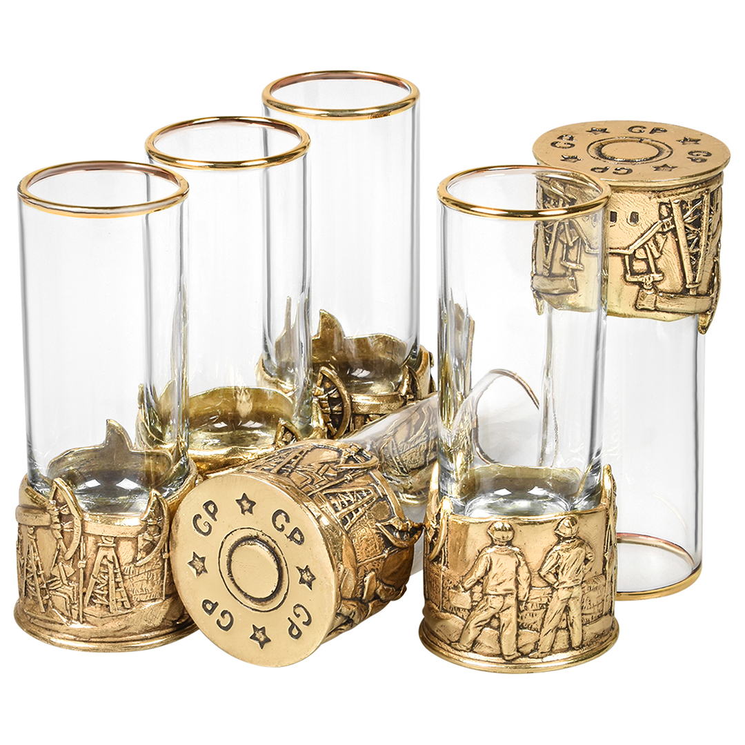 6 стопок для крепких спиртных напитков 60 мл из стекла с латунным художественным литьем
