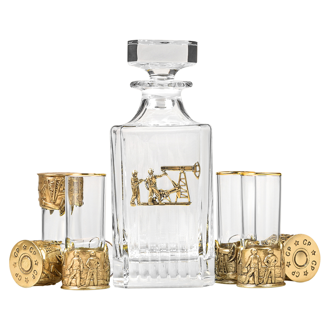 Большой набор «Нефтяник» для крепких спиртных напитков со штофом и 6 стопками