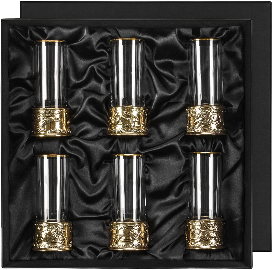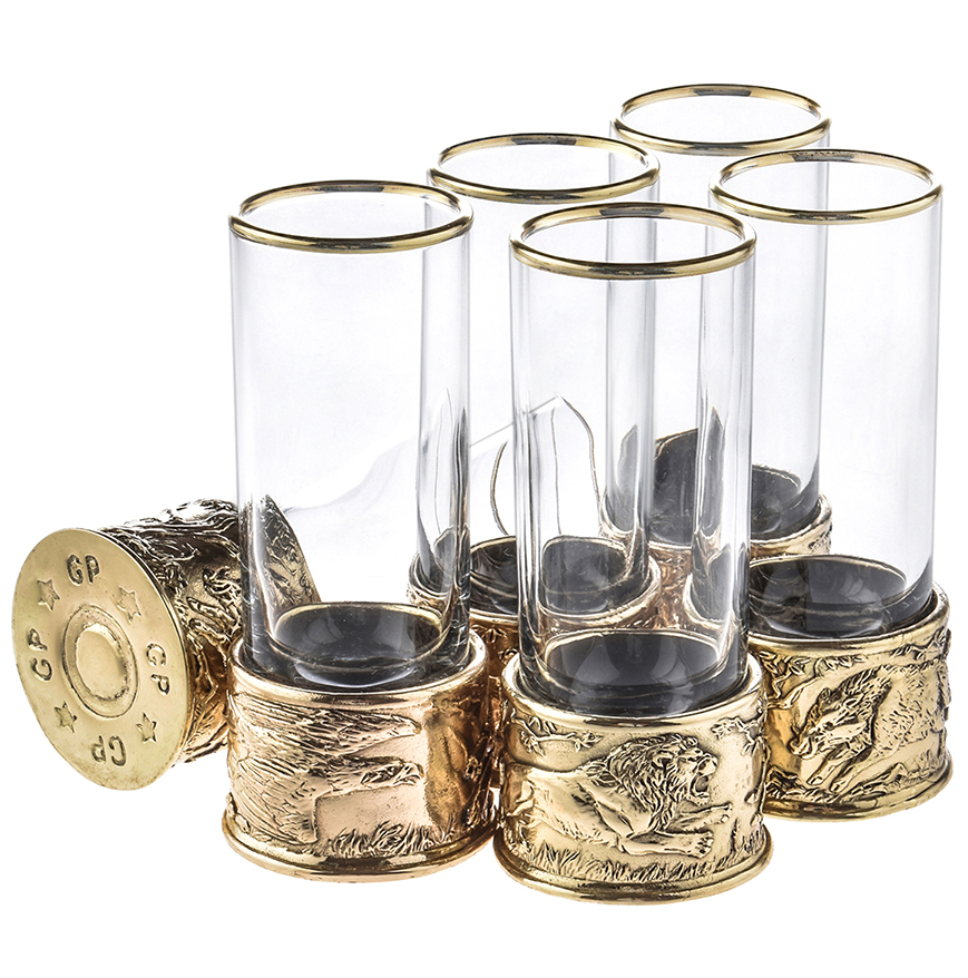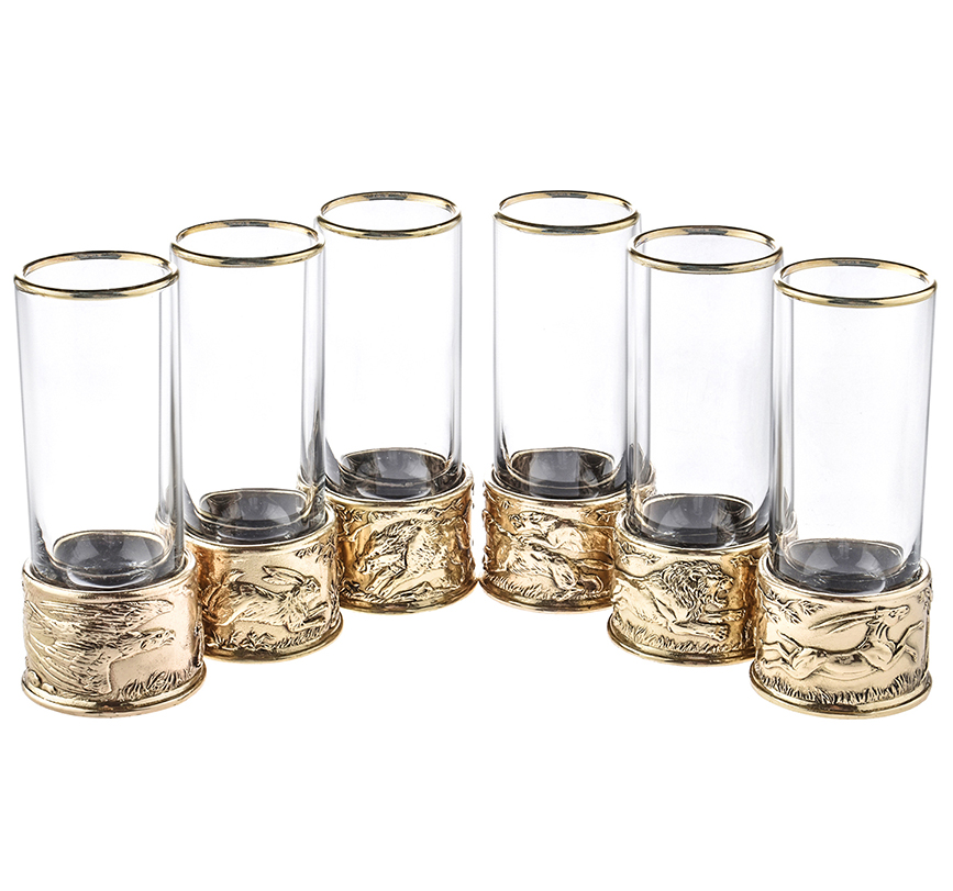 6 стопок для крепких спиртных напитков 60 мл из стекла с латунным художественным литьем