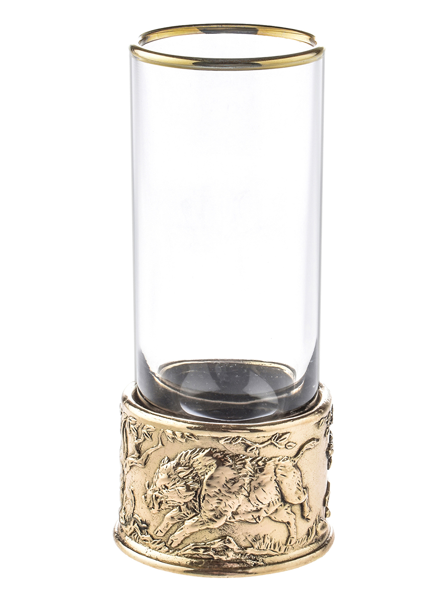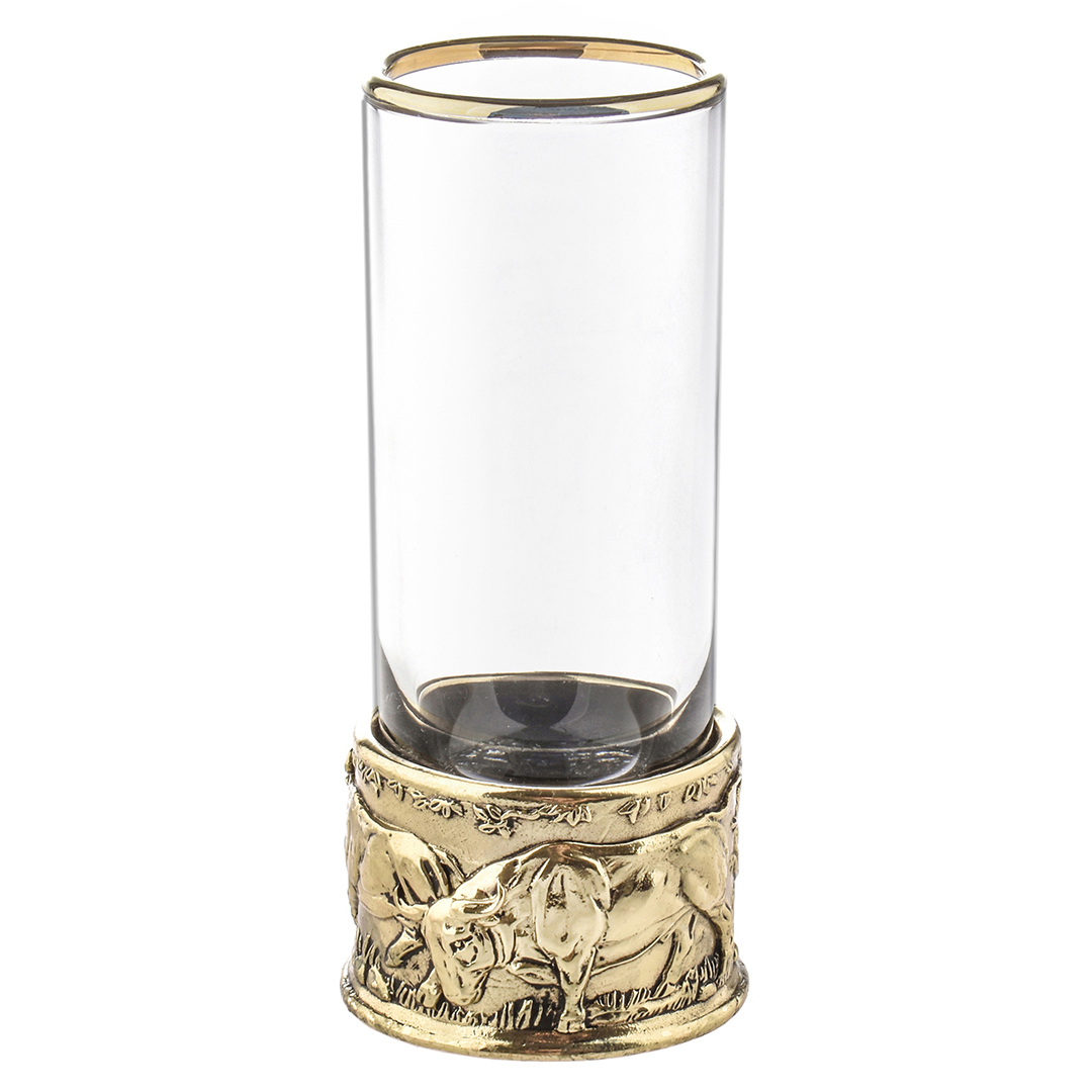 6 стопок для крепких спиртных напитков 60 мл из стекла с латунным художественным литьем