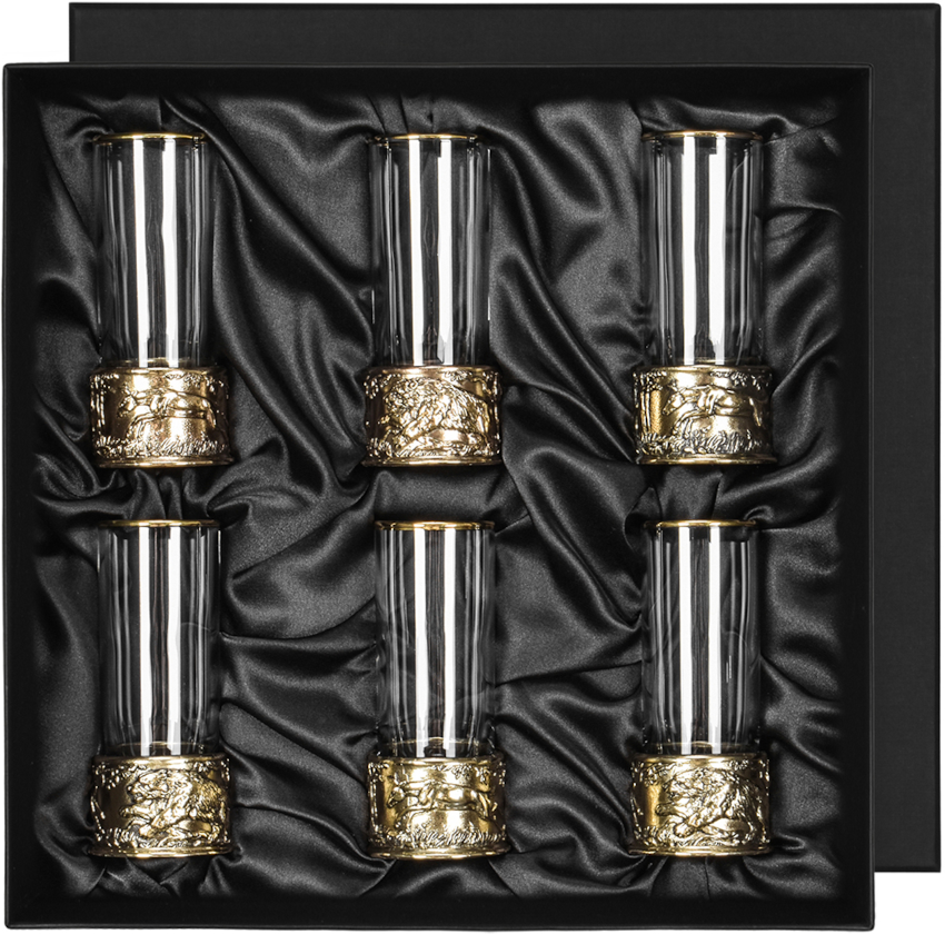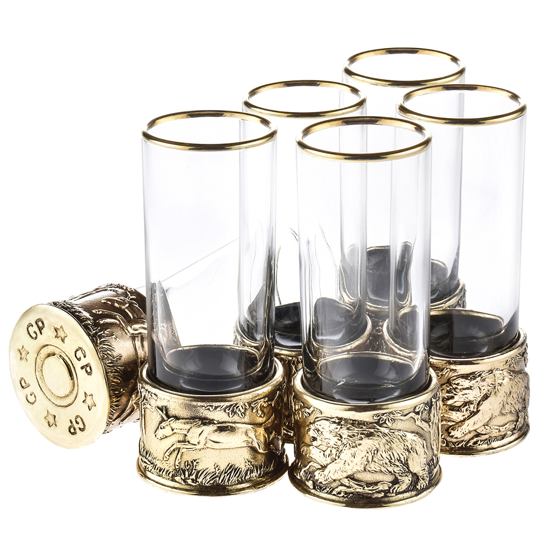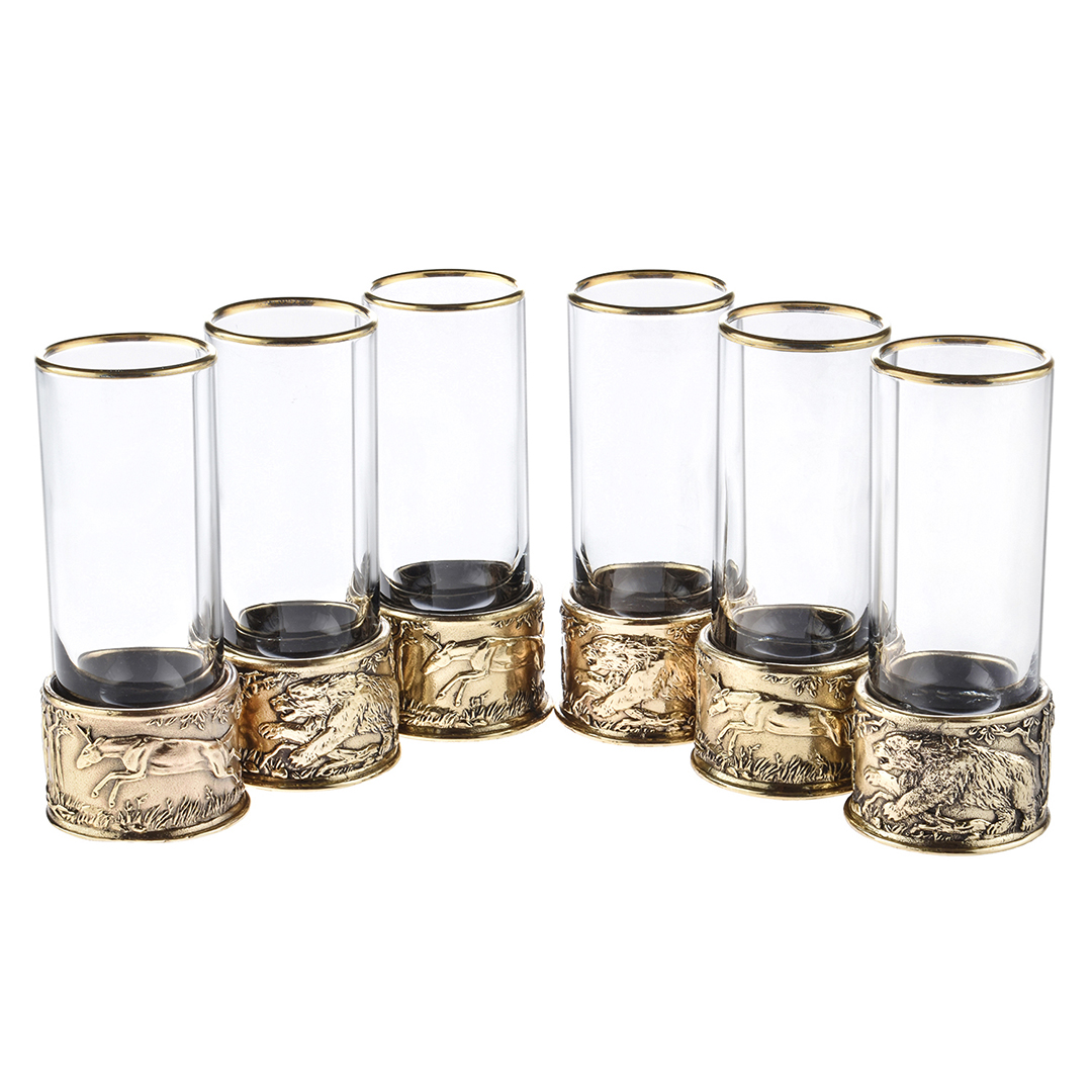 6 стопок для крепких спиртных напитков 60 мл из стекла с латунным художественным литьем