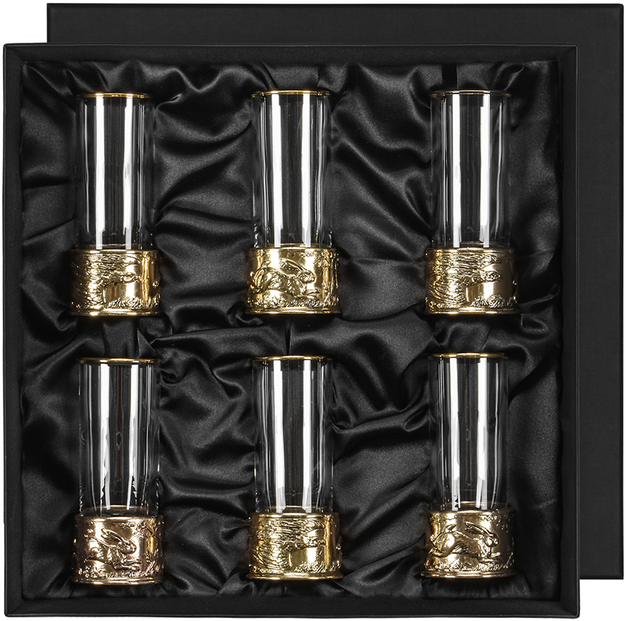6 стопок для крепких спиртных напитков 60 мл из стекла с латунным художественным литьем
