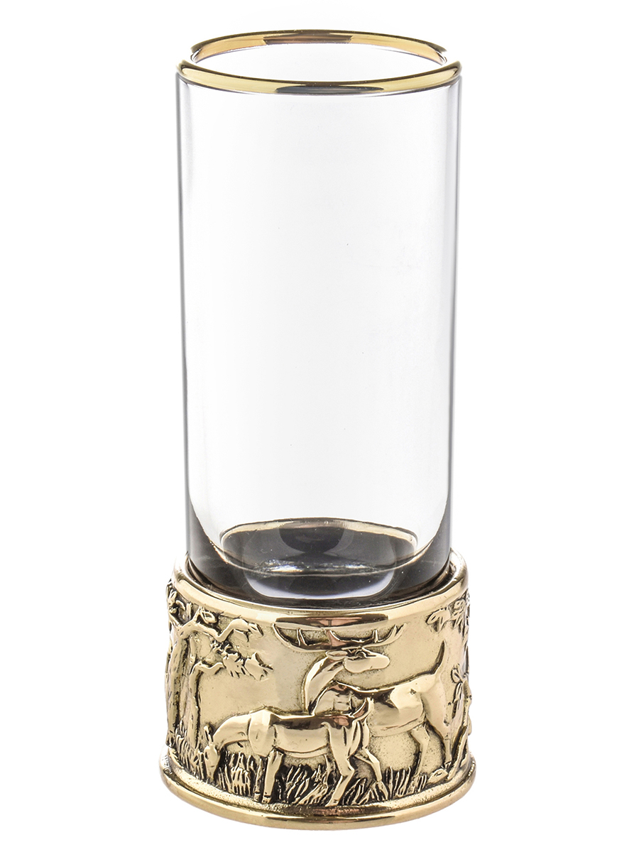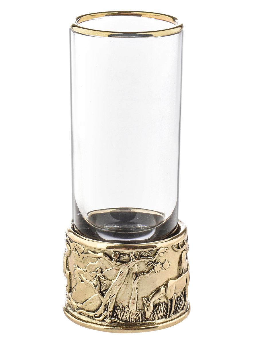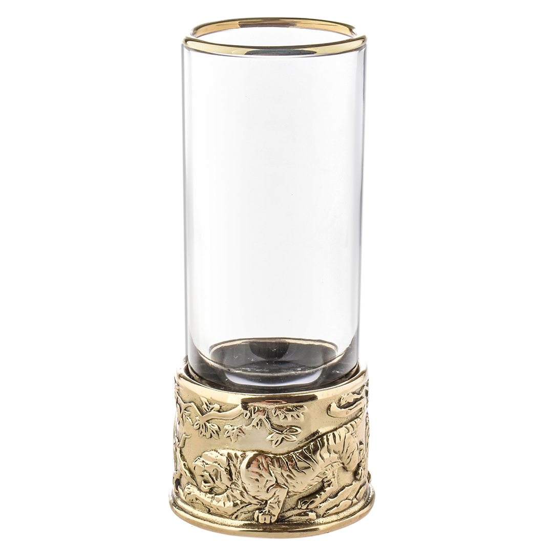 6 стопок для крепких спиртных напитков 60 мл из стекла с латунным художественным литьем