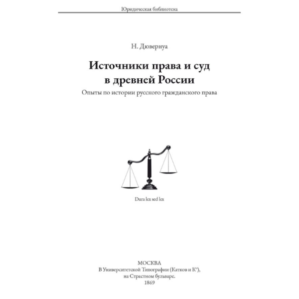 Книга Николая Львовича Дювернуа «Источники права и суд в Древней Руси», впервые изданная в 1869 году, представляет собой фундаментальное исследование в области историко-юридической науки. Она не только систематизирует древние правовые нормы, но и проводит глубокий анализ генезиса, эволюции и практической деятельности юридических институтов на Руси в период с IX по XV век. Дювернуа трактует право как динамическое явление, обусловленное специфическими историческими, социальными и культурными контекстами древнерусского общества. Он стремится продемонстрировать неразрывную связь между правовыми нормами и общественной жизнью того времени, подчеркивая их взаимообусловленность и взаимовлияние.