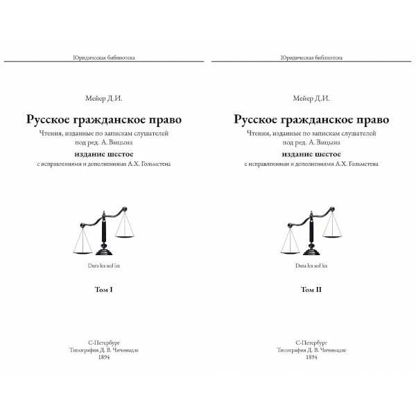 Представляем вашему вниманию подарочное издание «Русское гражданское право» в кожаном переплете ручной работы. Этот фундаментальный труд Д.И. Мейера, содержащий два тома, продолжает сохранять свою научную и историческую ценность для всех, кто интересуется эволюцией российского гражданского права.