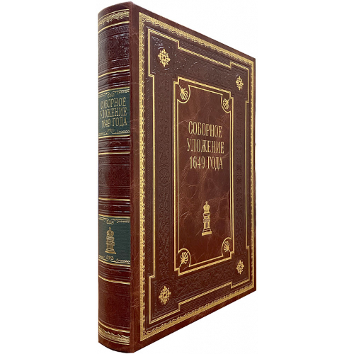 Подарочная книга "Соборное уложение 1649 года" в эксклюзивном кожаном переплете, изготовленном вручную представляет собой издание полного текста нормативного акта, принятого в период правления царя Алексея Михайловича Романова, известного как "Тишайший". Его правление охватывает период с 1645 по 1676 годы, что ознаменовалось важными реформами в различных сферах государственной жизни, включая правовую систему.