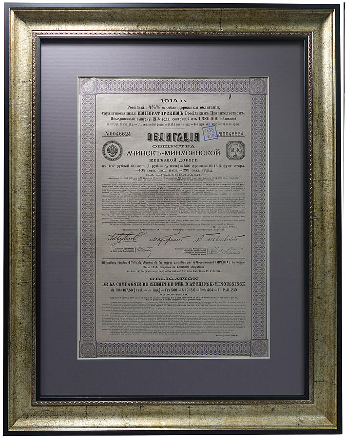 Облигация Общества Ачинск-Минусинской железной дороги (1914)