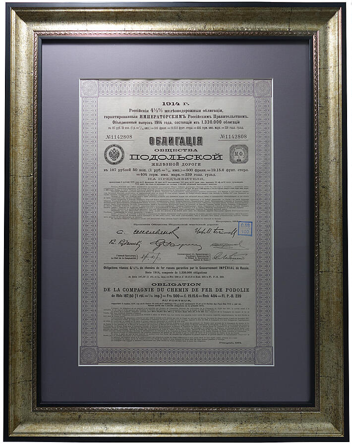 Облигация Общества Подольской железной дороги (1914)